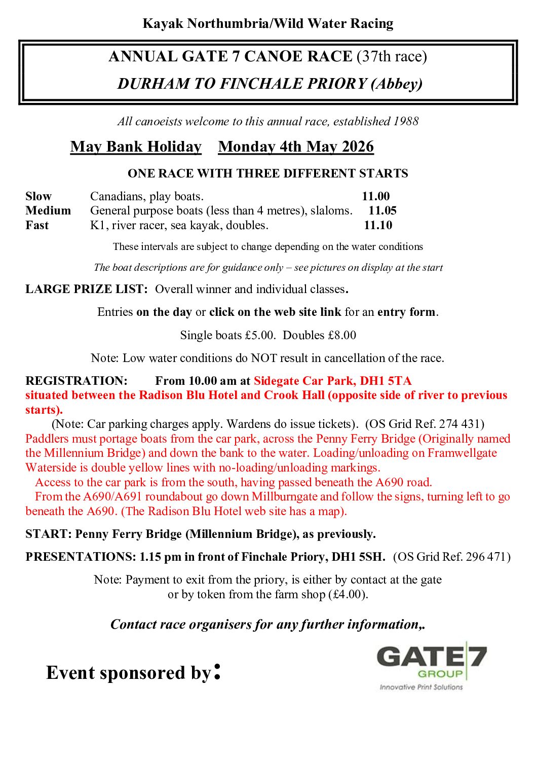 Gate 7 – May Day 2026 – Durham to Finchale Paddle and Race