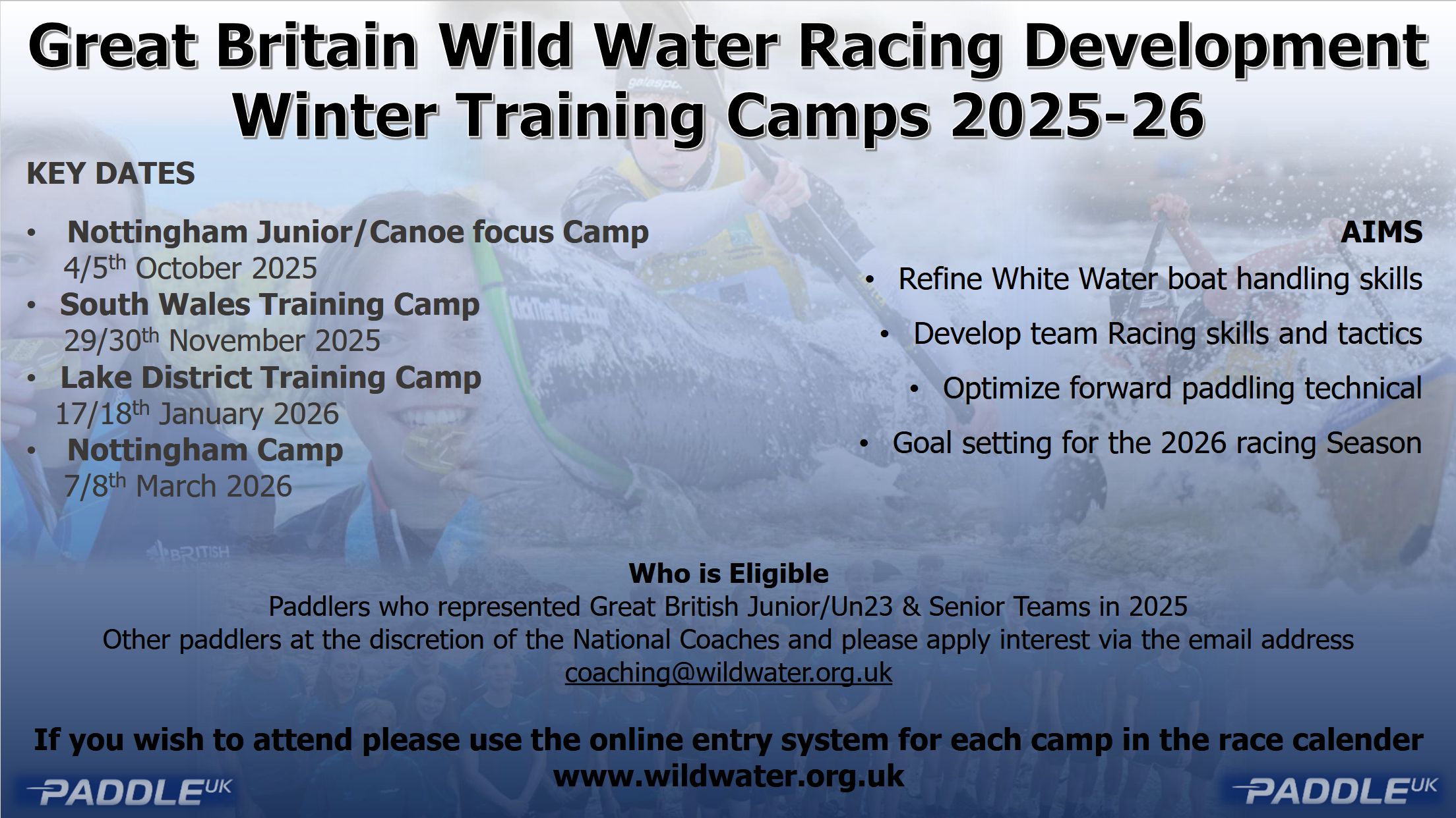 Region: Cumbria Weekend Long Training Camp - limited availability for paddlers Eligible Paddlers ONLY – Paddlers represented Great British Junior/U23 & Senior Teams in 2025 & 2024 Other paddlers at…